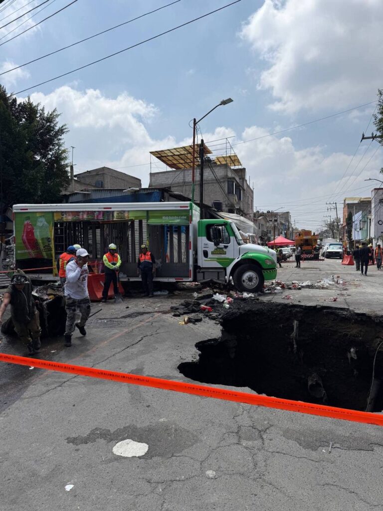 Autoridades locales reportaron que el socavón tiene una profundidad de ocho metros, así como doce metros de longitud y siete metros de ancho.